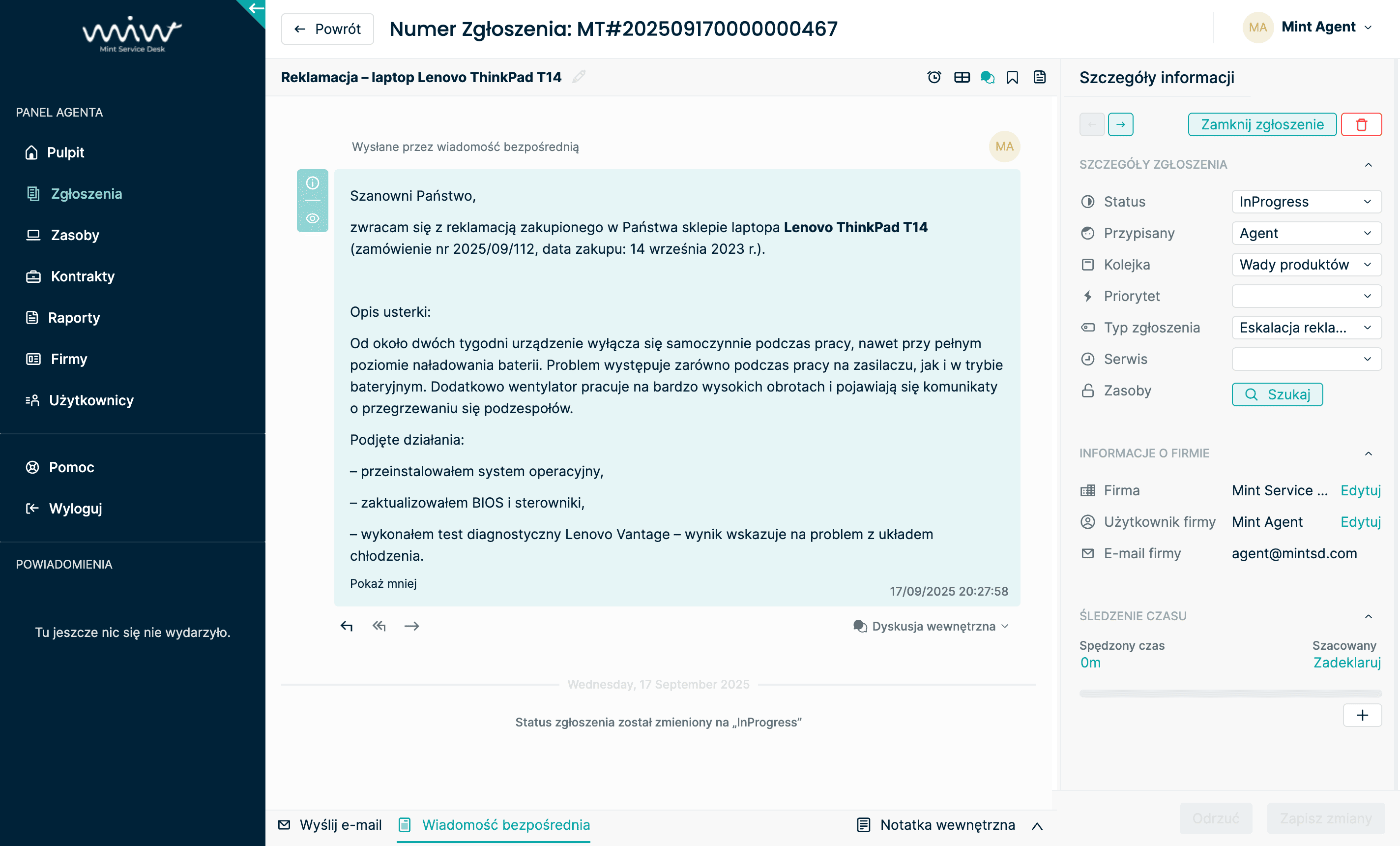 Tak. W systemie łatwo przypiszesz reklamację do konkretnej kolejki (np. działu technicznego, serwisu czy logistyki) albo bezpośrednio do wskazanego Agenta. Dzięki temu masz pewność, że trafi ona tam, gdzie trzeba – bez zbędnych opóźnień.
